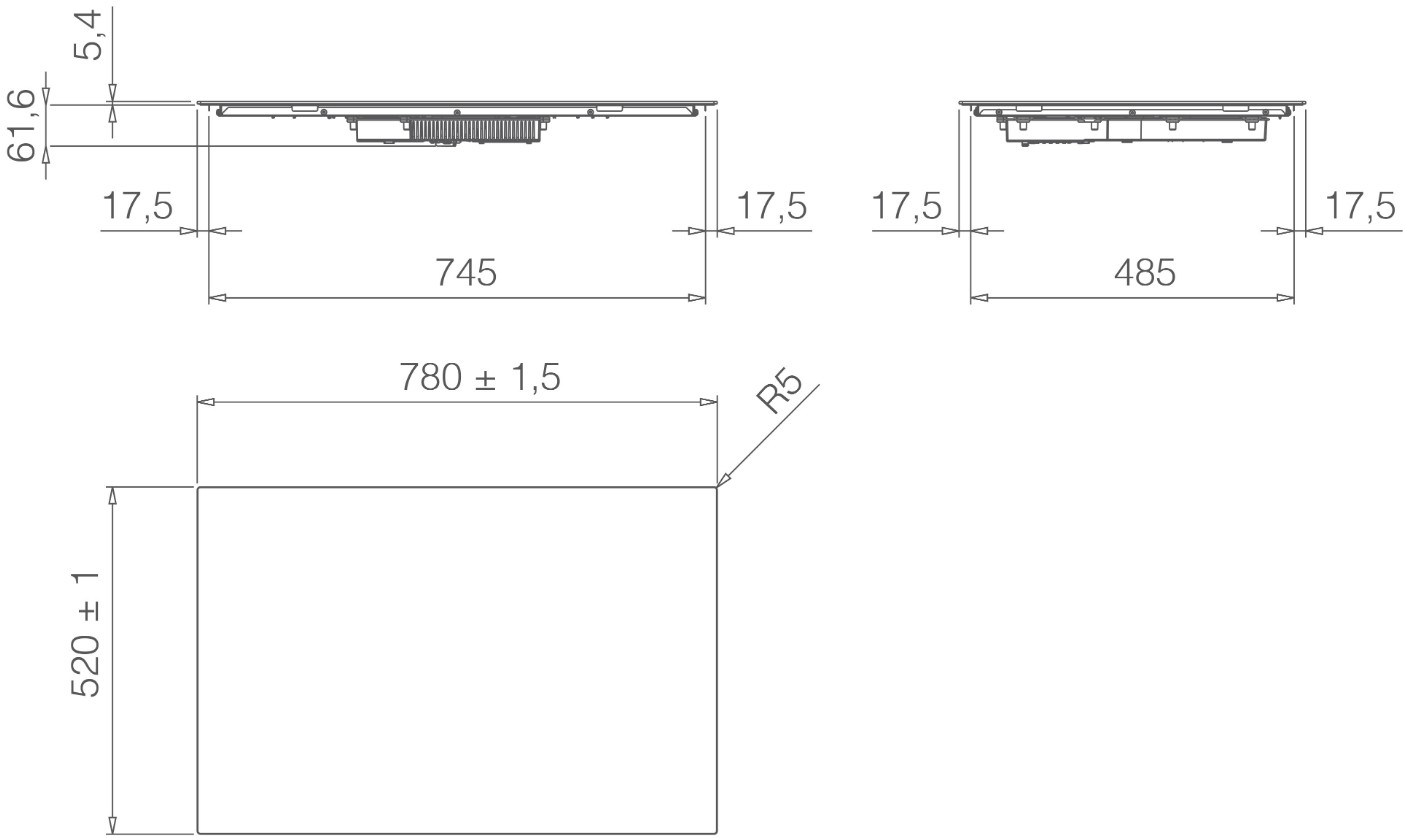 С высотой всего 5.4 см, шириной 78 см и глубиной 52 см, она идеально подходит для компактных кухонь, не занимая лишнего пространства. Управление осуществляется с помощью электронного слайдера, обеспечивающего точный контроль над процессом готовки. Наличие индикации остаточного тепла позволяет избежать ожогов, а функция таймера с отключением делает приготовление пищи безопасным и комфортным. Умная система определения наличия посуды и функция паузы добавляют удобства в повседневное использование.