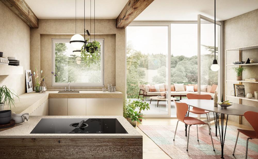 Габариты панели составляют 51.5 см в высоту, 83 см в ширину и 21 см в глубину, что позволяет встроить ее вровень со столешницей, создавая гармоничное пространство на кухне. При этом размер ниши для встраивания составляет 80.7×49.2 см. Панель оснащена четырьмя зонами приготовления, каждая из которых имеет мощность от 2.1 до 3 кВт и диаметр 21×19.1 см. Благодаря функции Bridge, можно объединить две зоны для приготовления блюд в большой посуде. Встроенная вытяжка с максимальной производительностью в режиме отвода 620 м³/ч и в режиме рециркуляции 600 м³/ч обеспечивает быстрое и эффективное удаление запахов и влаги.