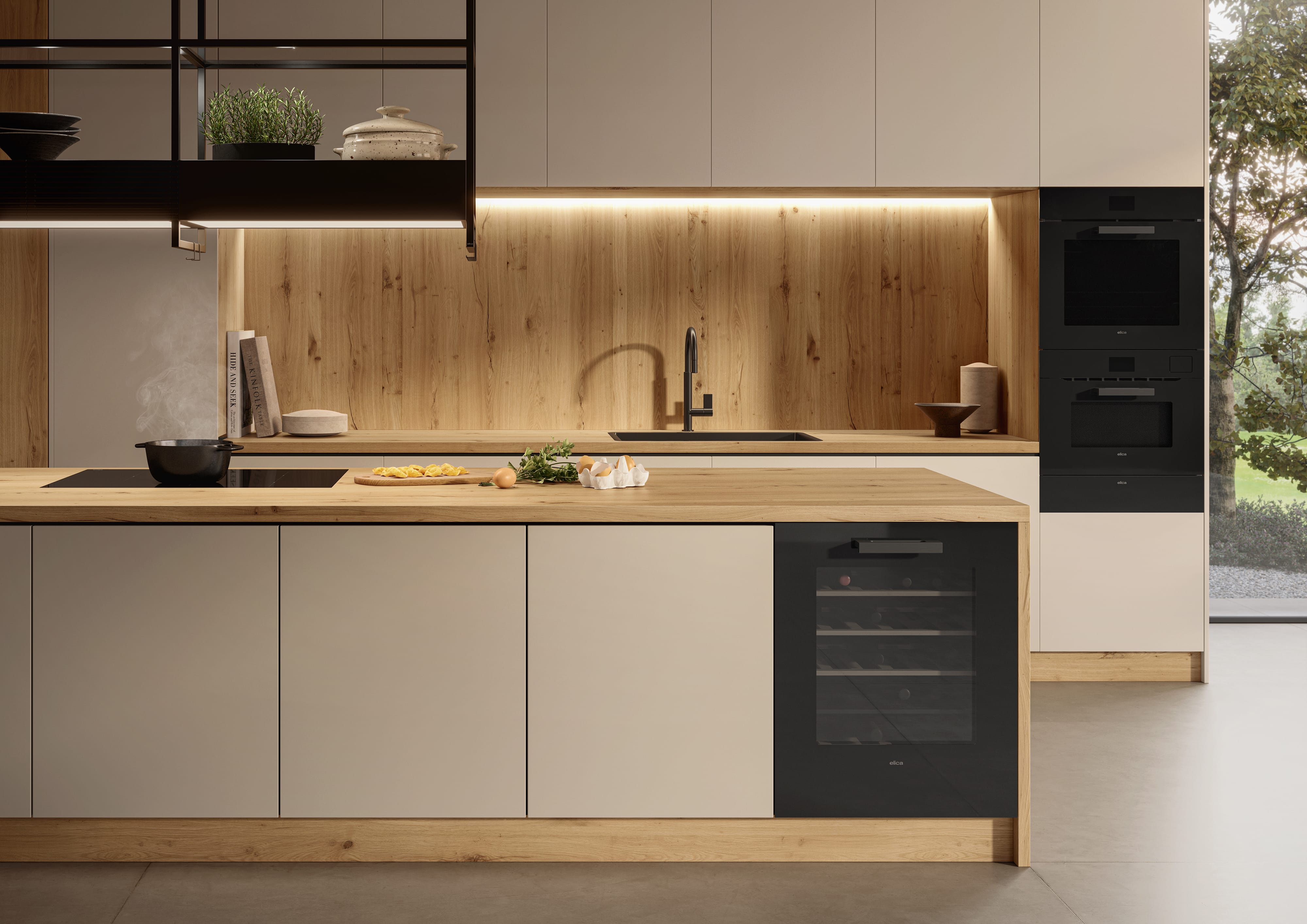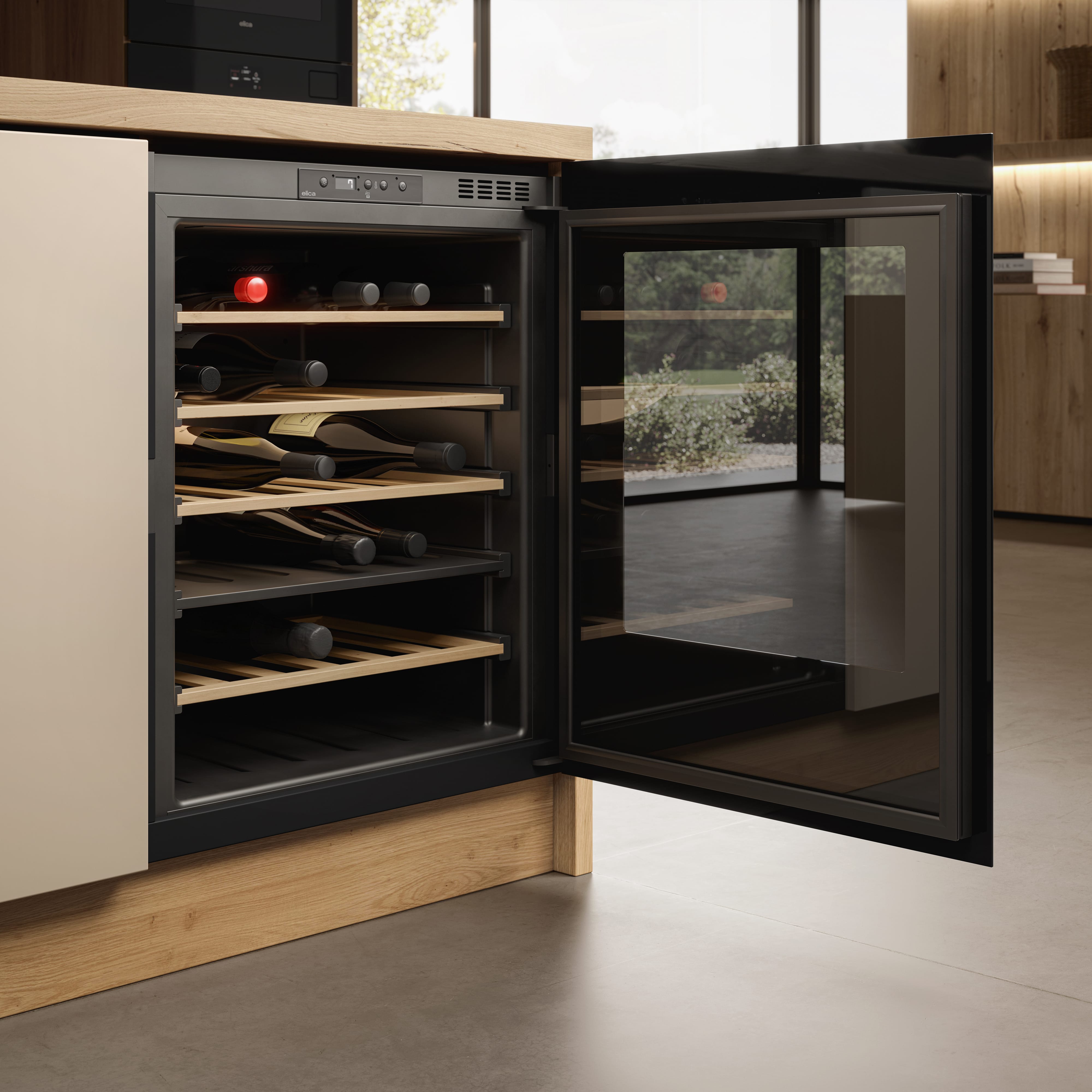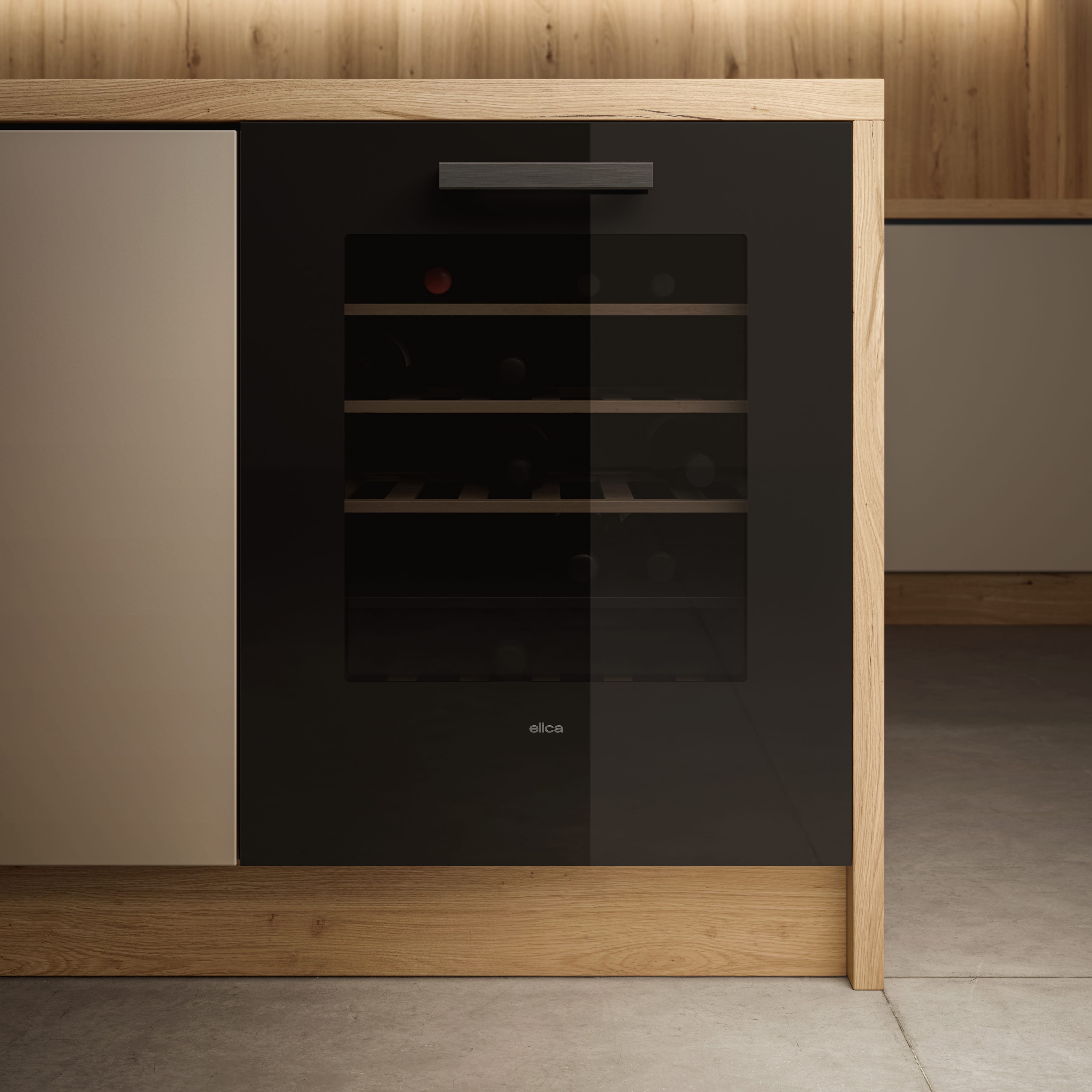 Эта новая встраиваемая линейка обладает отличительными чертами, такими как - использование дерева для внутренних полок, которые придают ей изысканный стиль, но при этом возникает вопрос стабильности самого продукта, что важно для защиты бутылок.