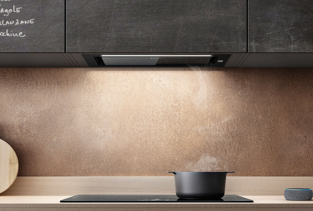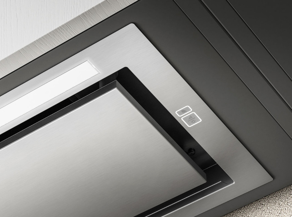 Hidden 2.0 @ оставляет больше свободы и времени для концентрации на процессе готовки. Этой вытяжкой можно управлять с помощью голосового помощника или приложение ElicaConnect, включающими подсветку и вытяжку, непрерывно контролировать состояние фильтров и запрашивать любую помощь несколькими щелчками.Приложение Elica Connect и голосовой помощник позволяют еще и регулировать интенсивность и теплоту света, от холодной элегантности белого до более теплого и обволакивающего, создавая нужную атмосферу.Hidden2.0@ разработана для монтажа внутрь подвесных шкафов и отличается периметральным всасыванием. Ее сверхплоский профиль допускает полное встраивание в подвесную мебель, создавая целиком утопленные формы и соответствуя самым последним тенденциям рынка.