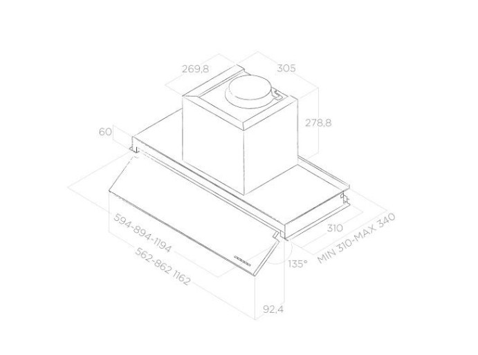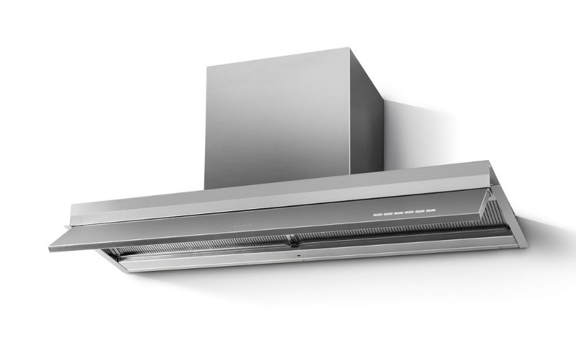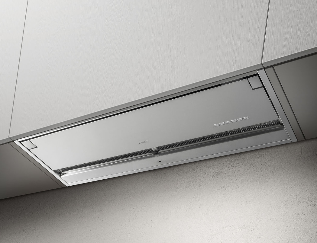 Система резисторов работает в сочетании с наклонной механической решетчатой конструкцией, по которой капли стекают в извлекаемую ванночку, и защитной передней панелькой, отводящей пары от дверок навесной мебели, благодаря наклону в 45°.
